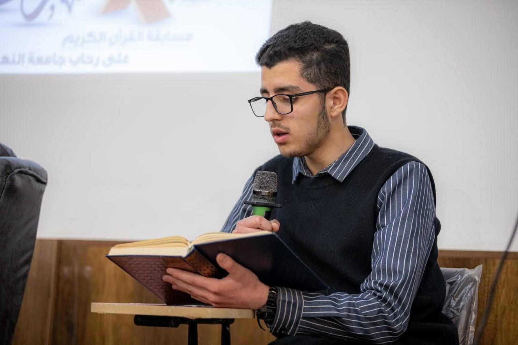 أشرف أساتذة المجمَع العلمي للقرآن الكريم التابع للعتبة العباسية المقدسة، على تحكيم المسابقة القرآنية الرمضانية الأولى لتلاوة القرآن الكريم، في جامعة النهرين في بغداد. وقال مدير معهد القرآن الكريم في بغداد التابع للمجمَع العلمي السيد نبيل الساعدي: إنّ "فعاليات المسابقة أقيمت بالتعاون مع كلية العلوم بجامعة النهرين، بحضور أساتذة الجامعة وملاكاتها، إحياءً لأيام شهر رمضان المبارك". وأضاف أنّ "المسابقة شارك فيها عدد من طلبة الجامعة، بإشراف لجنة تحكيمية متخصصة من أساتذة المعهد". وأشار الساعدي إلى أنّ "المسابقة شهدت تنافسًا فاعلًا بين الطلبة المشاركين، وكانت أغلب درجاتهم متقاربة لما قدّموه من أداء متميز".