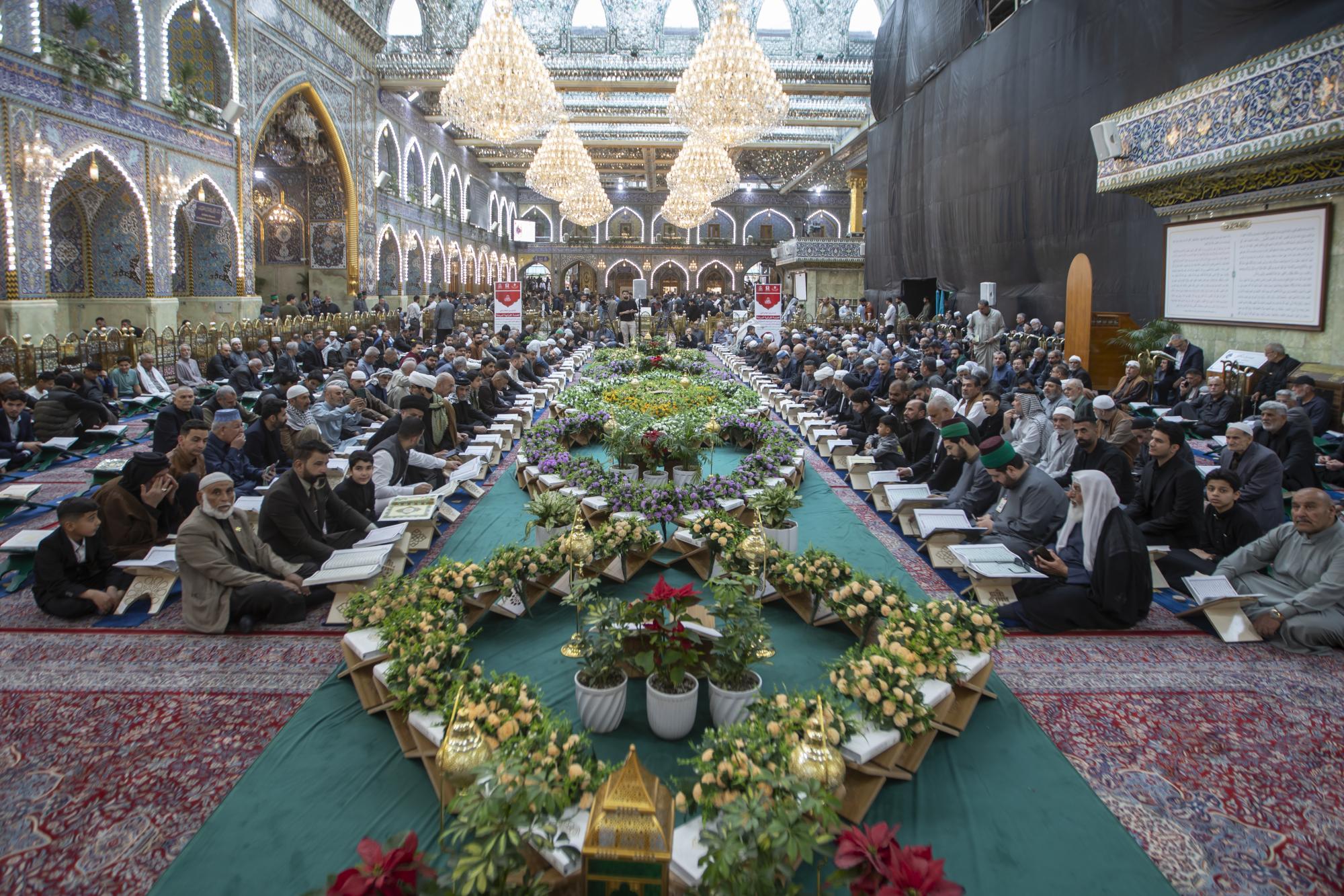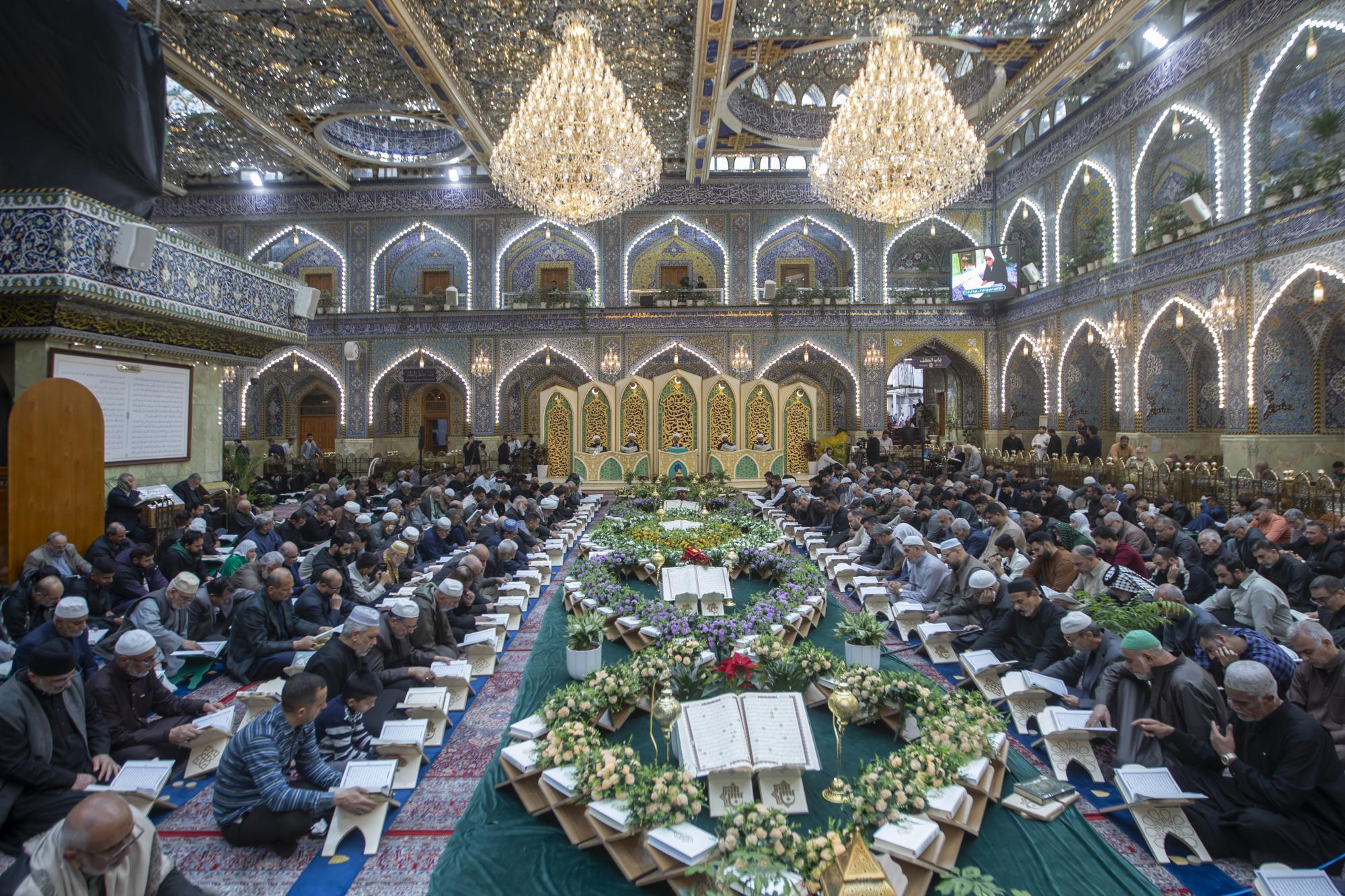 شهدت الختمةُ القرآنيّة الرمضانية المركزية المرتّلة المقامة في صحن مرقد أبي الفضل العباس (عليه السلام)، مشاركة طلبة العلوم الدينية. ويُقيمُ الختمةَ المَجمَعُ العلميّ للقرآن الكريم في العتبة العبّاسية المقدّسة، وتستمرّ طوال أيّام شهر رمضان المبارك، بهدف نشر الثقافة القرآنية وتعزيز الارتباط بكتاب الله العزيز. وقال مديرُ معهد القرآن الكريم في كربلاء التابع للمَجمَع، الشيخ جواد النصراوي، إنَّ "الختمة تستقطب مختلف شرائح المجتمع، من البراعم وطلبة العلوم الدينية، إلى جانب القوّات الأمنية وأساتذة الجامعات والمدارس، ممّا يُسهمُ في تعزيز الثقافة القرآنية في الأوساط المجتمعية". وأضاف أنَّ "الختمة المركزية المرتّلة تتميّز بتنوّع أساليب التلاوة، بما يتيح للحاضرين الاستماع إلى مختلف المدارس القرآنيّة والاستفادة منها".