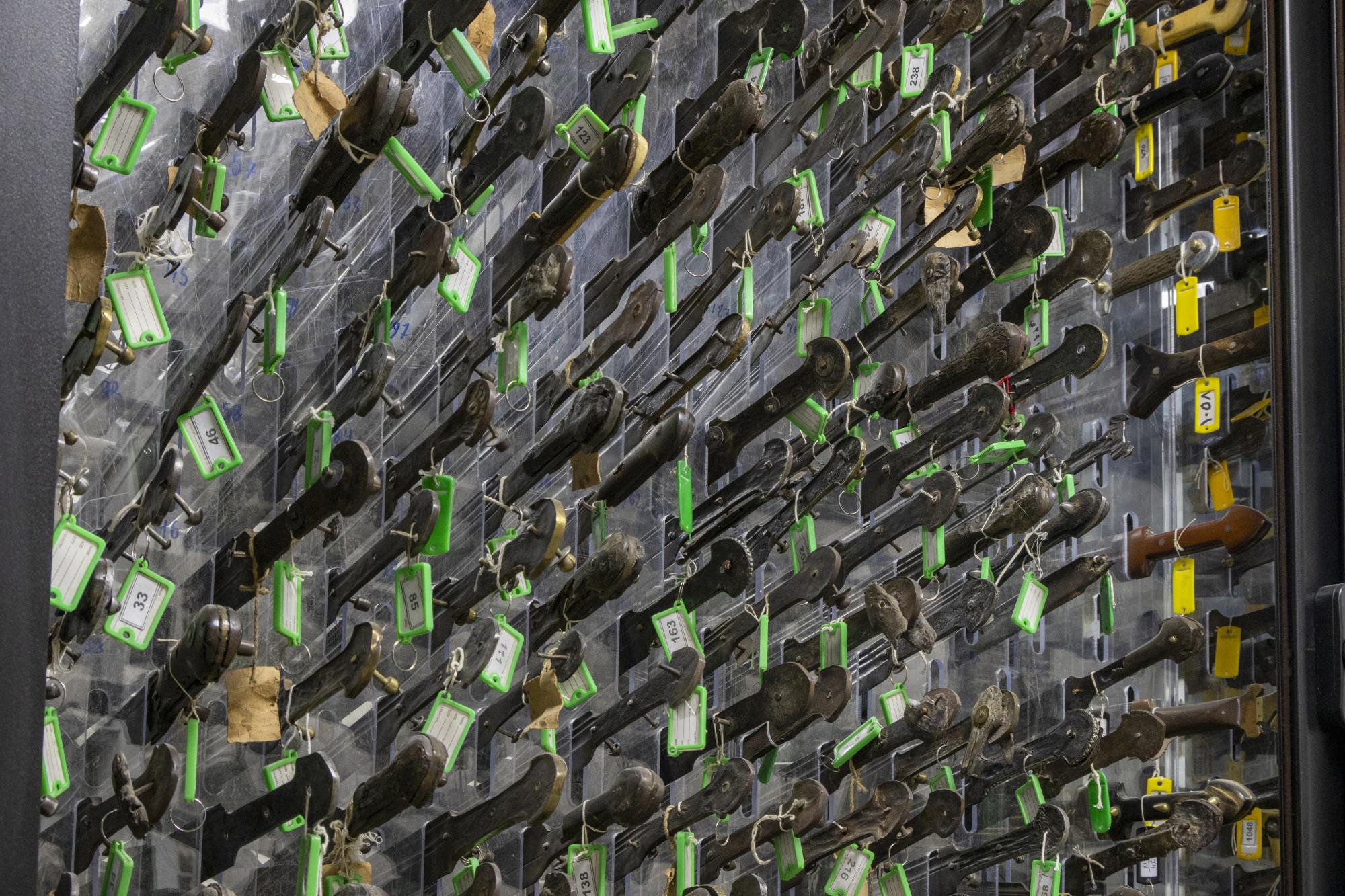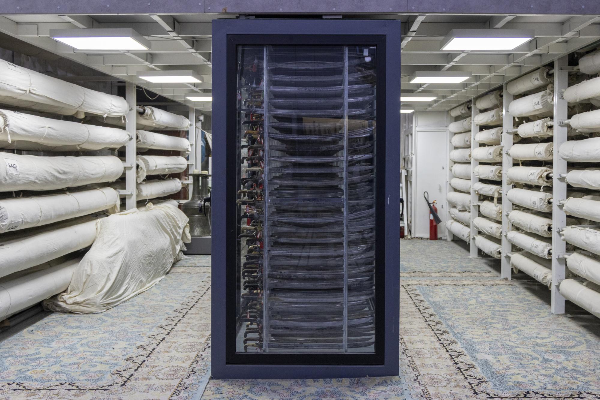 يعتمد قسم متحف الكفيل للنفائس والمخطوطات في العتبة العباسية المقدسة طرائق متقدمة في خزن أكثر من 3 آلاف قطعة متنوعة من الأسلحة البيضاء. وصُممت العارضات التي تضم هذه القطع بطريقة دقيقة تتيح إدخال نصل القطعة بشكل آمن وثابت، مما يضمن الحفاظ عليها من أي ضرر محتمل، ويمنع حركتها أو احتكاكها ببقية النفائس. وقال رئيس القسم السيد نافع الموسوي: إنّ "اعتماد هذه الطريقة الحديثة يأتي في إطار تطوير منظومة العمل المتحفي والارتقاء بأساليب الحفظ والخزن، وهو ثمرة جهود متواصلة تبذلها ملاكات القسم للحفاظ على المقتنيات وصيانتها وفق أفضل الممارسات المعتمدة، مما يضمن ديمومتها وقيمتها التاريخية". من جانبه أوضح مسؤول شعبة المخزن في القسم، السيد حسن هادي، أنّ "كل قطعة تُزود ببطاقة تعريفية خاصة تحمل رقمًا متحفيًّا، ما يسهم في تسهيل عمليات التوثيق والجرد، وتعزيز دقة التنظيم داخل المخازن، فضلاً عن أنّ النظام المعتمد يوفر مساحات خزن كافية لاستيعاب آلاف القطع ضمن حيز محدود بطريقة منظمة وآمنة".