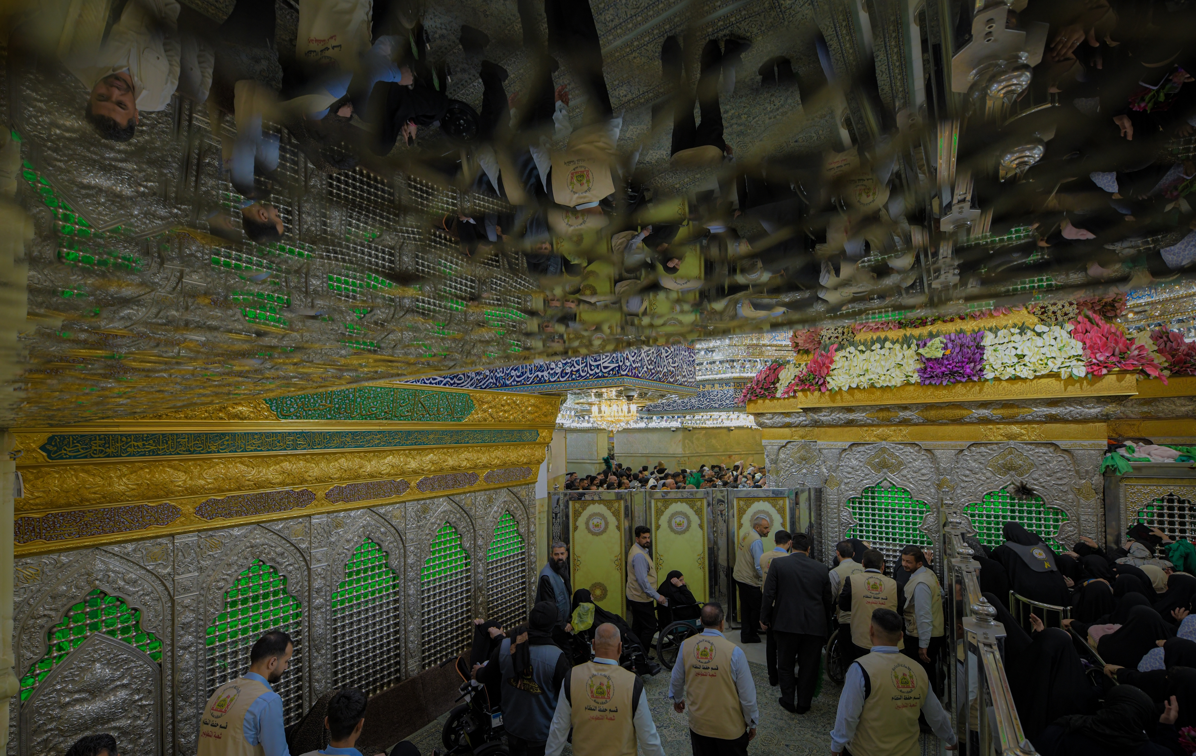 اكاليل الورد فوق ضريح الامام الحسين (ع)