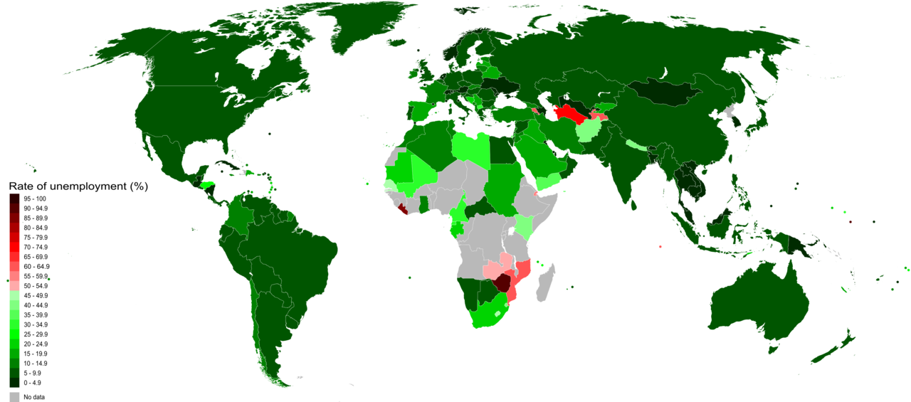 تعتبر البطالة في الوقت الحاضر من أخطر الأزمات انتشاراً بين العديد من فئات الافراد في المجتمع والتي تواجهها الدول العربية والعالمية على حد سواء ، وذلك نتيجة للنسب المرتفعة التي وصلت لها البطالة في الآونة الاخيرة ، والتي تحتاج الى وضع خطط تساعد على دراسة اسبابها ووضع حلول تساهم في التقليل من نسبتها حتى الوصول الى انهاء وجودها مع مرور الوقت ، وهذه قائمة الدول في خريطة العالم من تقرير منظمة الامم المتحدة لعام 2013 توضح معدلات البطالة الرسمية و المصرح بها فقط من قبل المؤسسات الرسمية في البلدان .