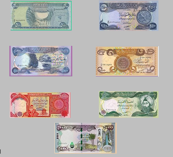 الدينار العراقي هو العملة الرسمية في العراق ويصدر من قبل البنك المركزي العراقي، وتم اصداره لأول مرة عام 1932م عند استقلال العراق وخروج الاحتلال البريطاني، وكان الدينار ينقسم الى 1000فلس الا ان معدلات التضخم العالية في اواخر القرن العشرين وما بعدها تسببت في هجر القطع المعدنية للمسكوكات التي كانت تسك بفئة الفلس حيث اصبحت خارج التداول حالياً،وبعد اصدار الدينار الجديد عام 2003م، أعلن البنك المركزي العراقي عام2015 اصدار عملة جديدة وهي فئة 50 الف دينار لتساعد في تخفيض التضخم النقدي في السوق العراقية.