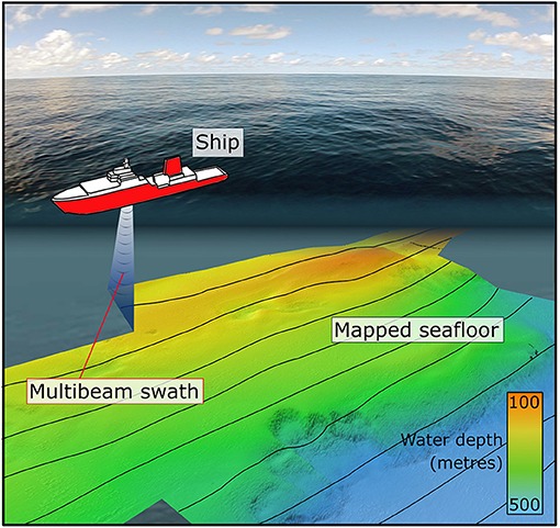 السفن التي تمسح قاع المحيط تعتمد على السونار متعدد الحزم وهو تطبيق مباشر لقوانين الفيزياء الصوتية يرسل السونار موجات صوتية عالية التردد نحو قاع البحر وترتد هذه الموجات عند الاصطدام بالأسطح أو التضاريس ثم تستقبلها أجهزة الاستشعار على السفينة باستخدام سرعة الصوت في الماء حوالي 1500 م/ث ووقت ارتداد الموجة يمكن حساب عمق القاع بدقة هذه التقنية تعتمد على مبدأ انعكاس الموجات وتغير سرعتها في الوسط المائي، ما يسمح برسم خرائط ثلاثية الأبعاد للتضاريس البحرية، وتحليل خواص القاع وتحديد مواقع الكائنات البحرية