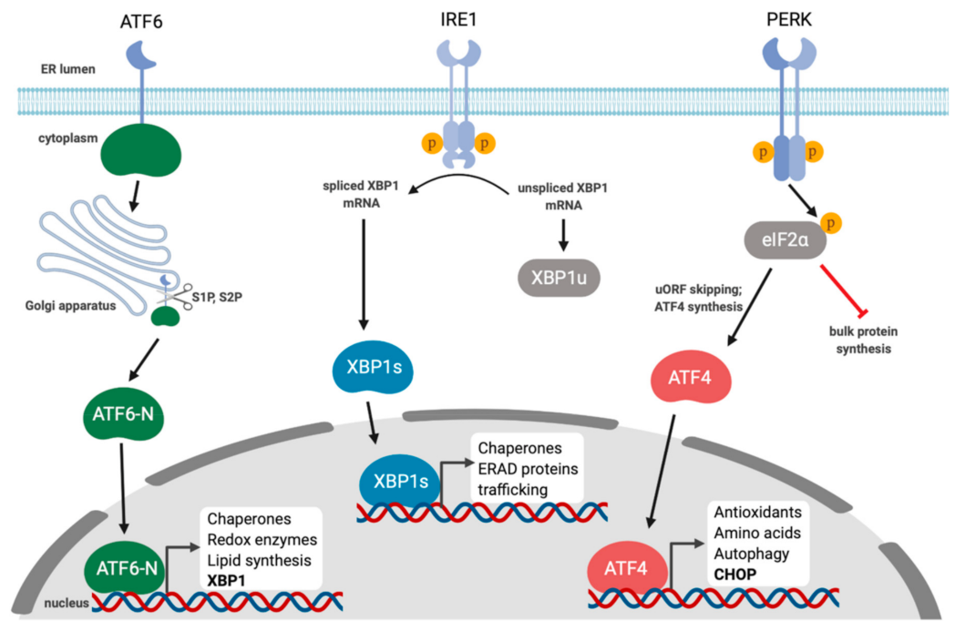 هي آلية دفاعية في الشبكة الإندوبلازمية تنشط عند تراكم بروتينات مطوية بشكل خاطئ بسبب ظروف مثل نقص الأوكسجين أو اختلال الكالسيوم. تعمل عبر بروتينات حساسة (PERK, IRE1, ATF6) لتقليل تصنيع البروتين وزيادة إنتاج البروتينات المساعدة على الطي (chaperones) والتخلص من البروتينات المعيبة (ERAD). إذا نجحت تعيد التوازن الخلوي وإذا فشلت تؤدي إلى الموت المبرمج. ترتبط هذه الاستجابة بأمراض مثل الزهايمر، السرطان، السكري.