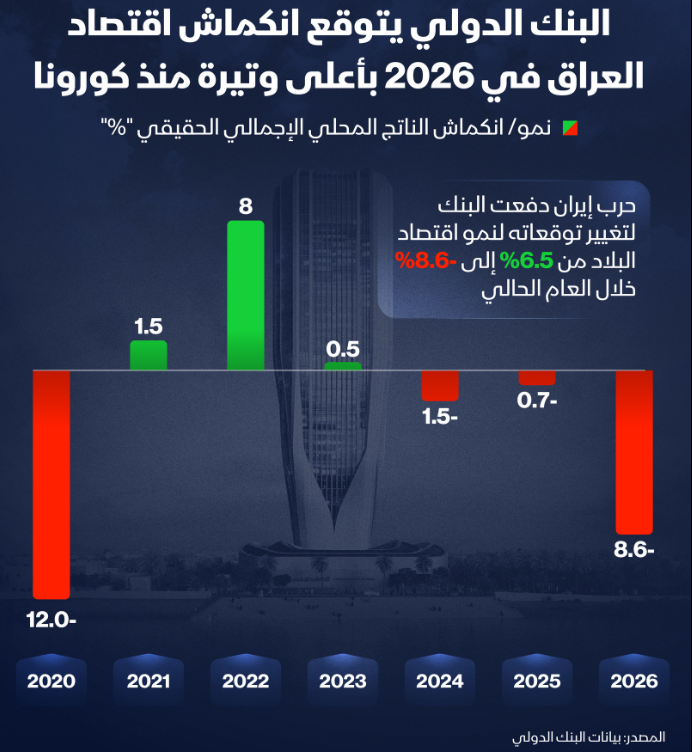 | التحديات التي يواجهها العراق حالياً تعود إلى "سنوات من التوسع المالي" حيث قال: "الحكومة كانت بالفعل تواجه قيوداً تمويلية حادة قبل الحرب بسبب مزيج من الإنفاق الزائد ومحدودية الإيرادات غير النفطية بشكل كبير"، علماً بأن تقديرات الصندوق تُشير إلى انكماش الاقتصاد بنحو 0.4% عام 2025. | أعجبني |