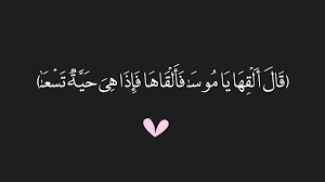 أمر سبحانه موسى أن يلقي عصاه عن يمينه وهوقوله:{قال ألقها يا موسى} فلما ألقى العصا صارت حية تتحرك بجد وجلادة وذلك أمر غير مترقب من جماد لا حياة له وهوقوله:{فألقاها فإذا هي حية تسعى} وقد عبر تعالى عن سعيها في موضع آخر من كلامه بقوله:{رآها تهتز كأنها جان}: القصص: 31،