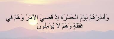 {وأنذرهم يوم الحسرة إِذا قضي الأمر وهم في غفلة وهم لا يؤمنون}.