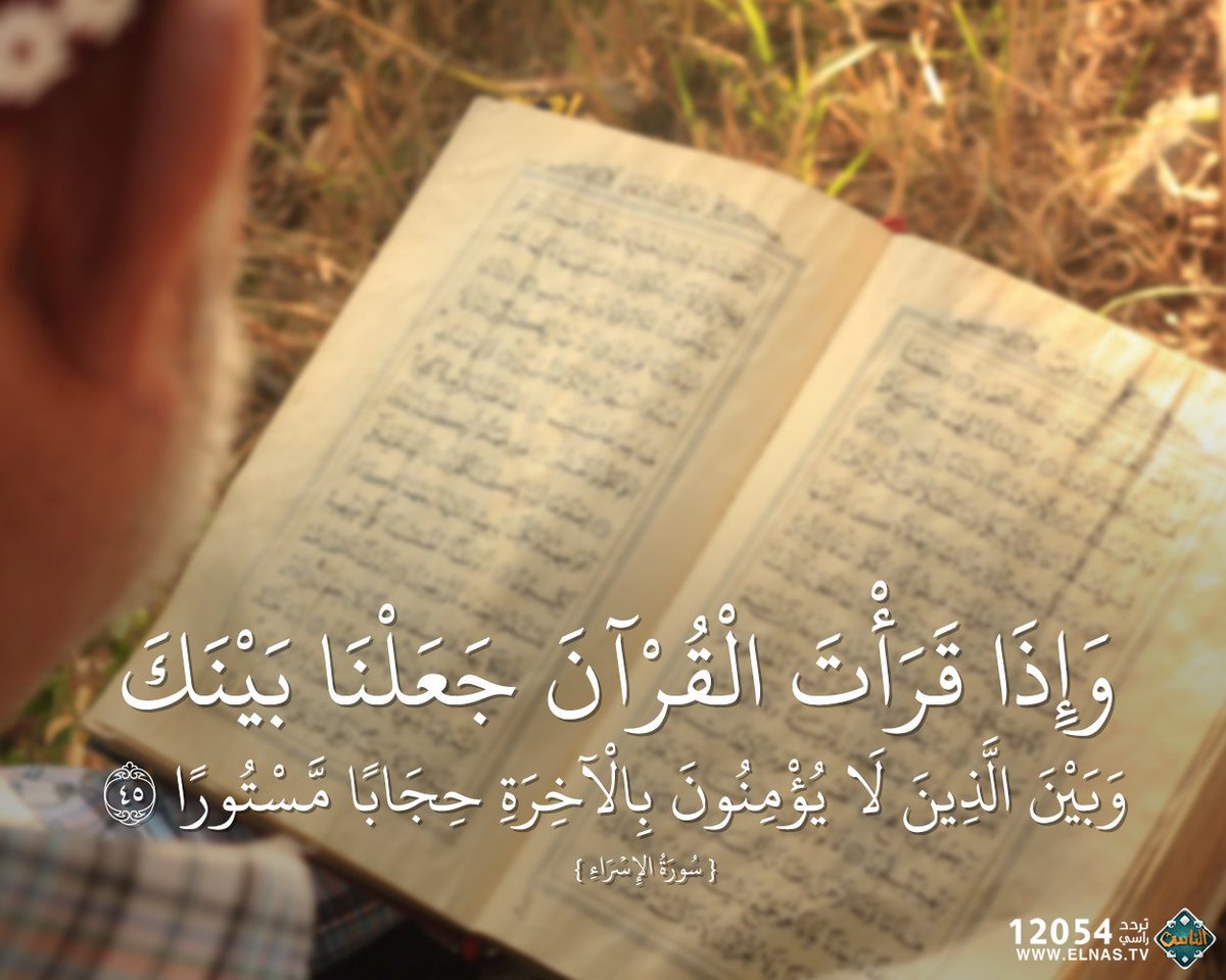 {وَإِذَا قَرَأْتَ الْقُرْآنَ جَعَلْنَا بَيْنَكَ وَبَيْنَ الَّذِينَ لَا يُؤْمِنُونَ بِالْآخِرَةِ حِجَابًا مَسْتُورًا} [الإسراء: 45].