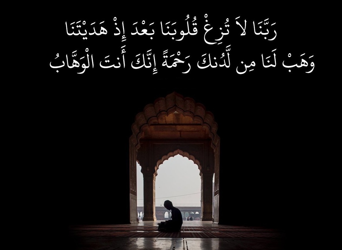 {رَبَّنَا لَا تُزِغْ قُلُوبَنَا بَعْدَ إِذْ هَدَيْتَنَا وَهَبْ لَنَا مِنْ لَدُنْكَ رَحْمَةً إِنَّكَ أَنْتَ الْوَهَّابُ} [آل عمران: 8].