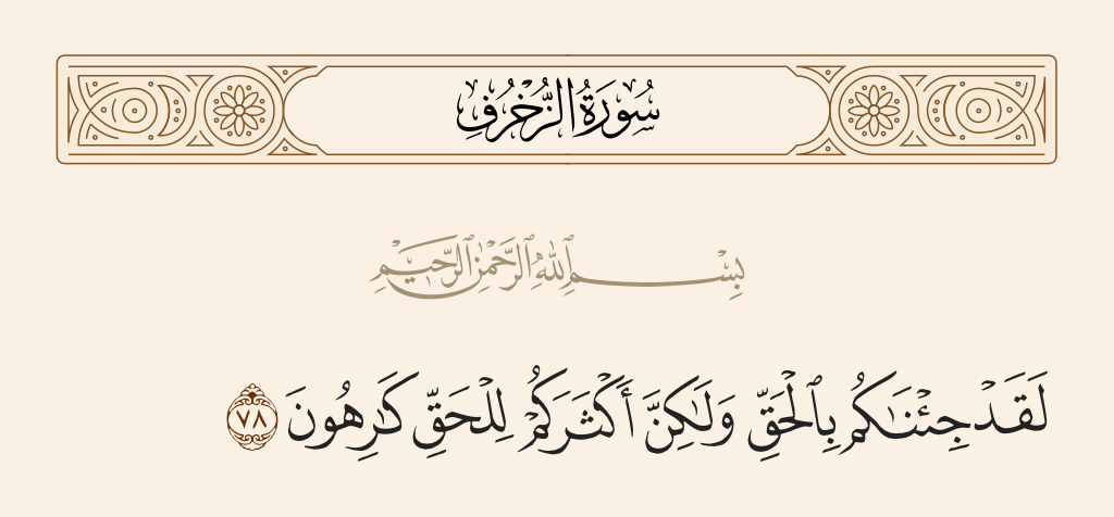 {لَقَدْ جِئْنَاكُمْ بِالْحَقِّ وَلَكِنَّ أَكْثَرَكُمْ لِلْحَقِّ كَارِهُونَ} [الزخرف: 78].