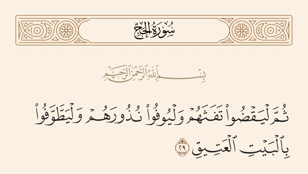 هو في كلام العرب إذهاب الشعث ، وقال الأزهري : لا يعرف التفث إلا من قول ابن عباس ، والتفسير جاء انه أخذ من الشارب ، والأظفار ، ونتف الإبطين ، وحلق العانة.