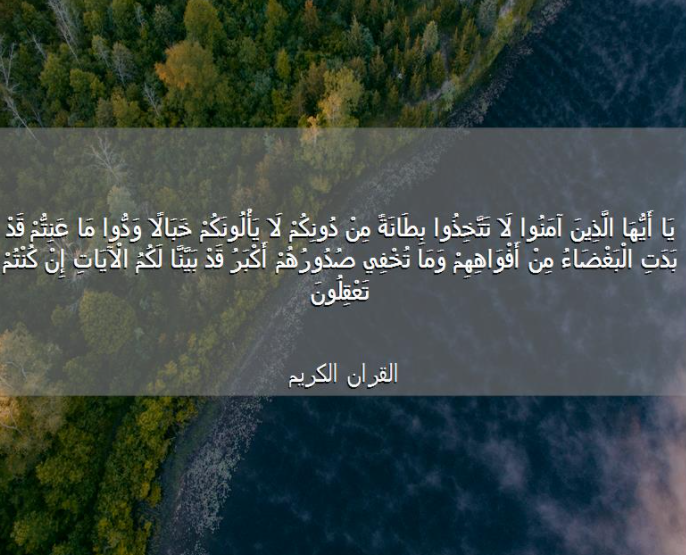 «البطانة» مأخوذة من بطانة الثوب ، والبطانة في المقام كناية عن خاصة الرجل الذين يستبطنون أمره ويطلعون على أسراره .قال تعالى : {يَا أَيُّهَا الَّذِينَ آمَنُوا لَا تَتَّخِذُوا بِطَانَةً مِّن دُونِكُمْ لَا يَأْلُونَكُمْ خَبَالًا وَدُّوا مَا عَنِتُّمْ قَدْ بَدَتِ الْبَغْضَاءُ مِنْ أَفْوَاهِهِمْ وَمَا تُخْفِي صُدُورُهُمْ أَكْبَرُ}وقد نبه القران المؤمنين بان لا يتخذوا من الذين يفارقونهم في الدين والمسلك أصدقاء يسرون إليهم ويخبرونهم بأسرارهم .كونهم غير اوفياء بحفظ الاسرار.