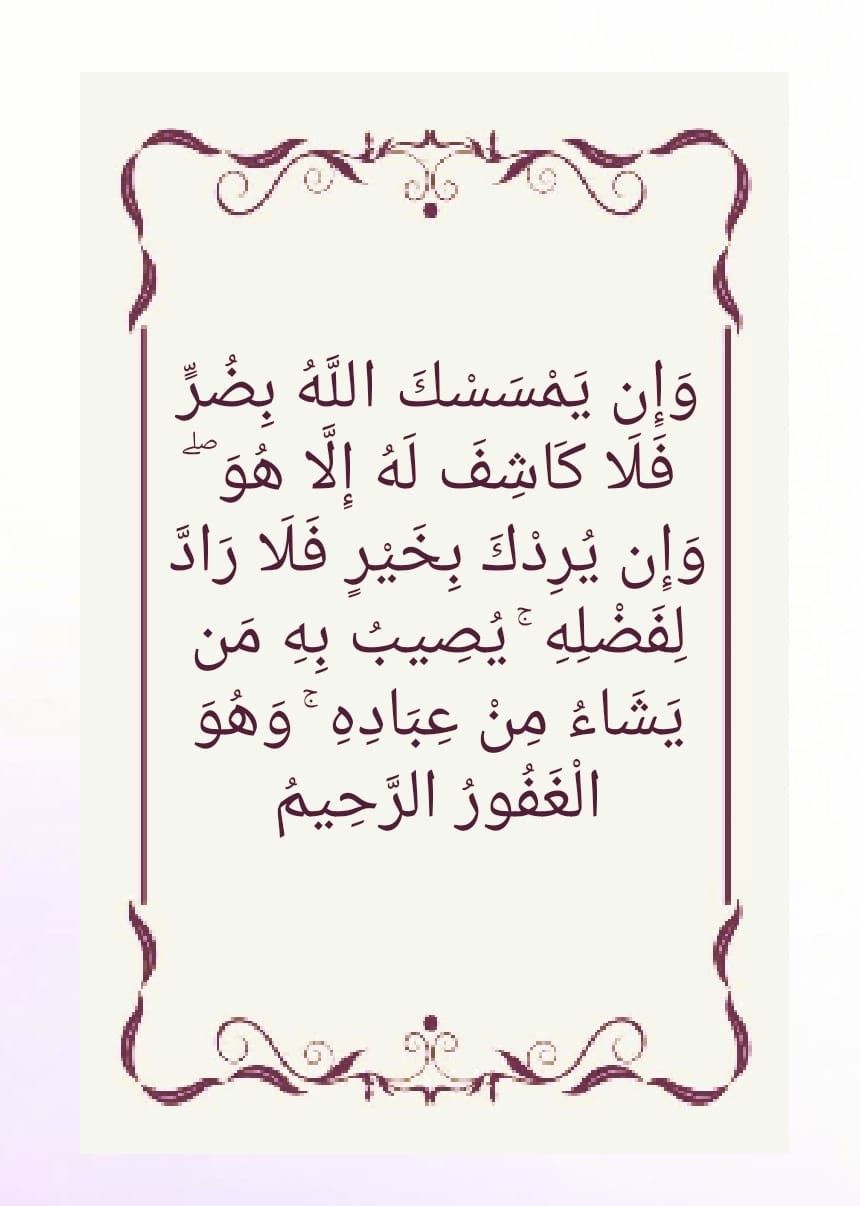 قوله سبحانه { وإِنْ يَمْسَسْكَ اللّٰهُ بِضُرٍّ فَلٰا كٰاشِفَ لَهُ إِلّٰا هُو } [الانعام : 17] .