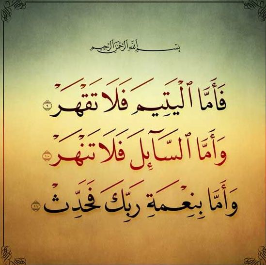 قوله – سبحانه -: {فَأَمَّا الْيَتِيمَ فَلَا تَقْهَرْ (9) وَأَمَّا السَّائِلَ فَلَا تَنْهَرْ} [الضحى: 9، 10]، ونحوهما .