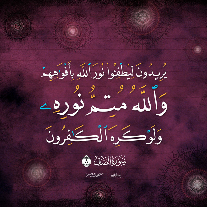 {يريدون ليطفئوا نور الله بأفواههم} أي يريدون إذهاب نور الإيمان والإسلام بفاسد الكلام الجاري مجرى تراكم الظلام فمثلهم فيه كمثل من حاول إطفاء نور الشمس بفيه {والله متم نوره} أي مظهر كلمته ومؤيد نبيه ومعلن دينه وشريعته ومبلغ ذلك غايته .