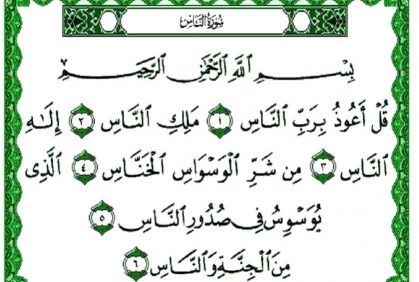 قال تعالى : {قُلْ أَعُوذُ بِرَبِّ النَّاسِ (1) مَلِكِ النَّاسِ (2) إِلَهِ النَّاسِ (3) مِنْ شَرِّ الْوَسْوَاسِ الْخَنَّاسِ (4) الَّذِي يُوَسْوِسُ فِي صُدُورِ النَّاسِ (5) مِنَ الْجِنَّةِ وَالنَّاسِ} [الناس : 1 - 6] .