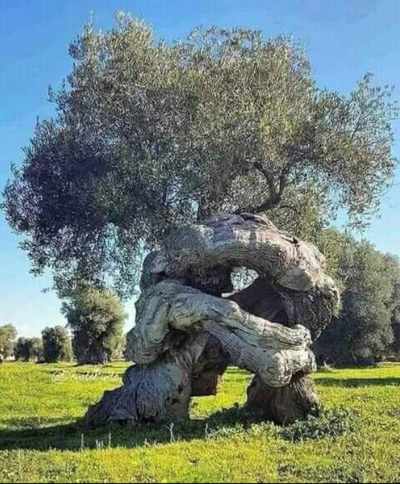 يقدر عمر شجرة الزيتون القديمة في ايطاليا بأكثر من الف عام وما زالت تنتج الزيتون وكأنها تحتضن نفسها