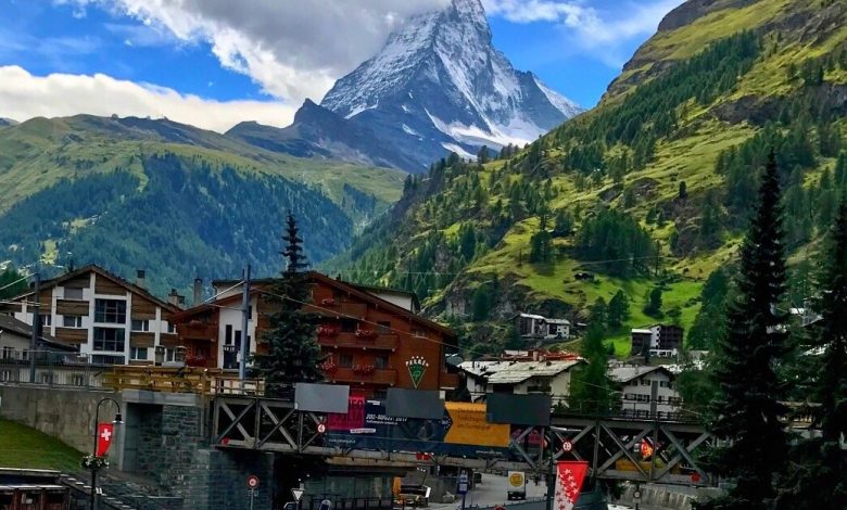تقع Zermatt في جنوب سويسرا على الحدود مع إيطاليا في كانتون Valais وهي تتميز بموقعها على جبال الألب، وهي محاطة بـ 29 قمة جبلية من بينها جبل Matterhorn الشهير.