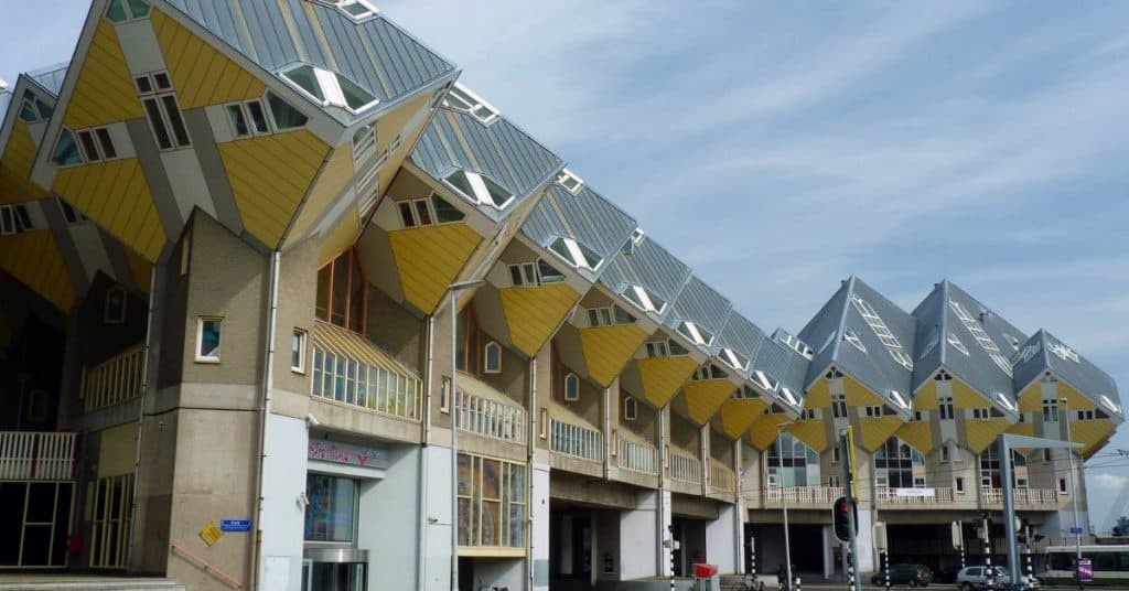 قام المهندس المشهور بيت بلوم بتصميم المنازل المكعبة المعروفة باسم Cube Houses في العام 1984 في محاولة منه لجعل المساحة الداخلية للمنزل أكبر على الرغم من ضيق مساحة البناء. اليوم، أصبحت هذه المنازل وجهة سياحية تجذب الزوار لالتقاط الصور مع هذه المباني الفريدة من نوعها، يمكنكِ أن تزوري المنازل المكعبة أثناء تواجدكِ في مدينة روتردام.
