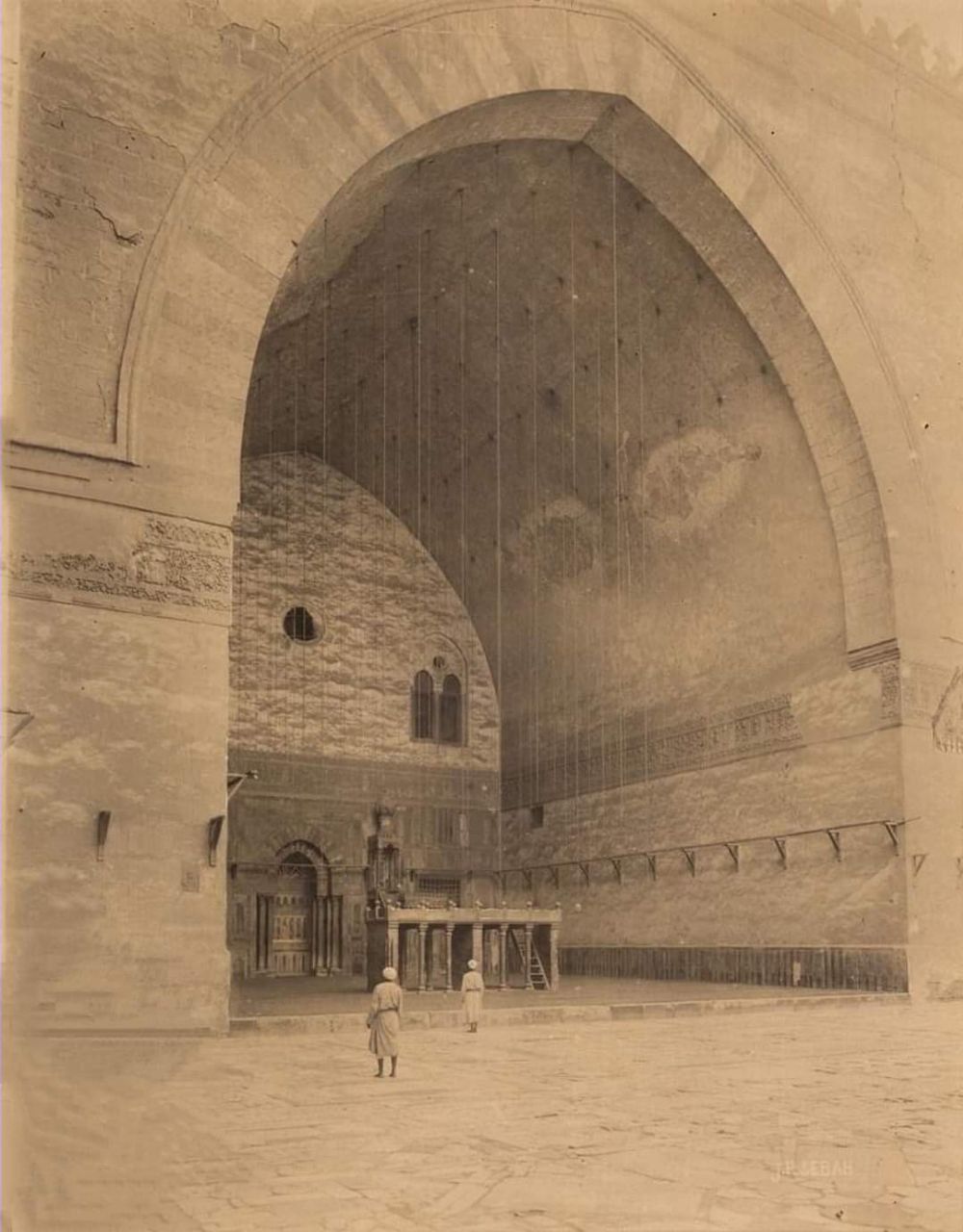 صورة لإيـوان قبلة مسجد السلطان حسن في القاهرة عام ١٨٨٠.