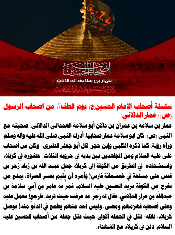 سلسلة أصحاب الامام الحسين(ع) يوم الطف// من اصحاب الرسول (ص)/ عمار الدالاني