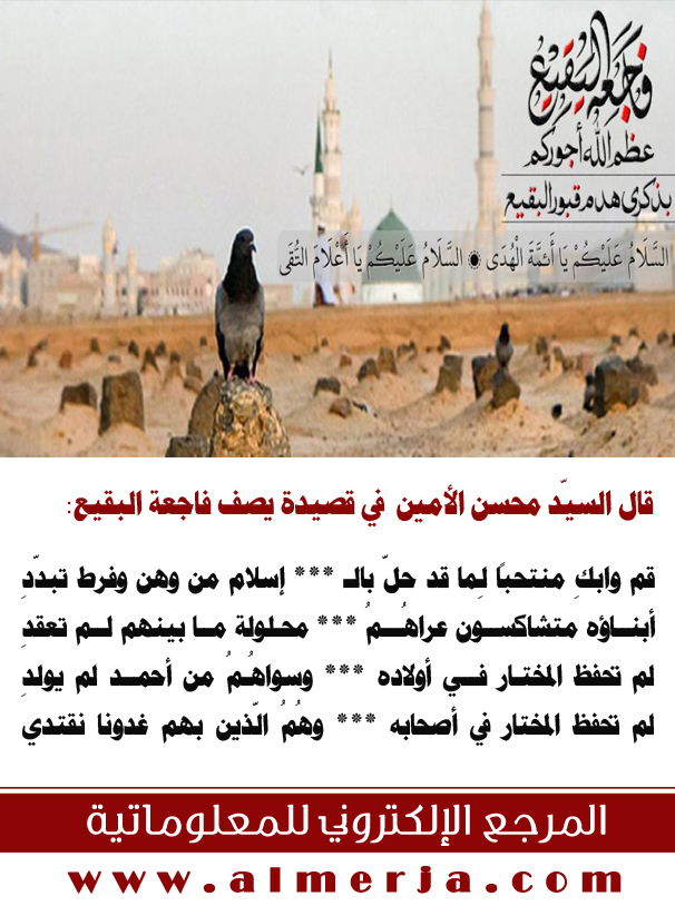 البقيع/ البَقيع، هي أقدم مقبرة للمسلمين في المدينة المنورة، بجوار قبر رسول الله (ص)، وتضم أربعة من أئمة الشيعة من أهل بيت رسول الله (ص) وهم: الإمام الحسن والإمام علي بن الحسين، الإمام الباقر، الإمام الصادق عليهم السلام. كما تضم البقيع أيضا قبر العباس بن عبد المطلب عم النبي (ص)، وقبر إبراهيم بن رسول الله (ص)، وقبر عدد من عمات النبي (ص)، وزوجاته، وبعض أصحابه، وعدد من شهداء صدر الإسلام، والعديد من كبار شخصيات المسلمين. وقد كانت البقيع منذ عهد رسول الله (ص) مزاراً للمؤمنين إلى يومنا هذا.