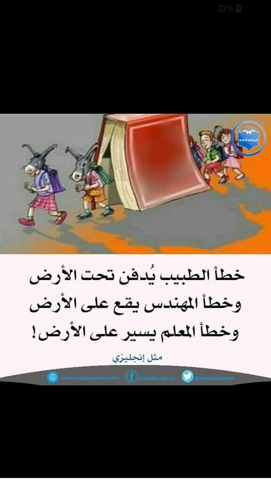 خطأ الطبيب يدفن تحت الأرض ، وخطأ المهندس يقع على الأرض ، وخطأ المعلم يسير على الأرض ... مثل انجليزي