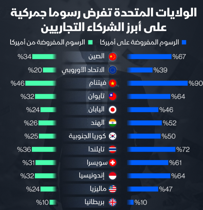 #الولايات_المتحدة تفرض رسوماً جمركية على أبرز الشركاء التجاريين ..