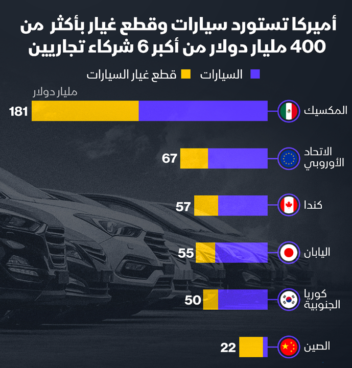 #أميركا تستورد سيارات وقطع غيار بأكثر من 400 مليار دولار من 6 شركاء تجاريين.. فهل تعيد تعريفات الرئيس الامريكي ترامب تشكيل الخريطة ؟