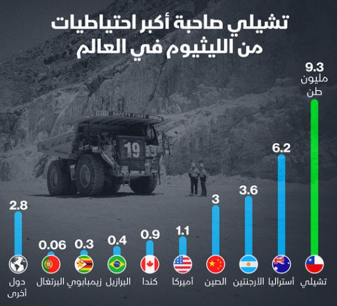 - تشيلي الدولة الواقعة في أميركا الجنوبية تمتلك أكبر احتياطيات من #الليثيوم في العالم