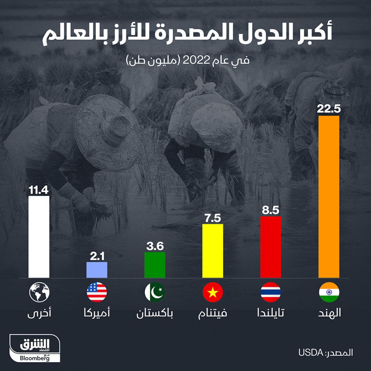 قفزت أسعار الأرز في آسيا إلى أعلى مستوياتها في أكثر من 3 أعوام بعدما حظرت الهند تصدير معظم إنتاجها من المحصول،فأثارت مخاوف تتعلق بمعروض السلعة الغذائية الأساسية في مختلف أرجاء العالم،وترجع المخاوف من حظر صادرات الهند إلى كونها تعد أكبر دولة مُصدرة للأرز في العالم،وتمثل صادراتها نحو40%من إجمالي صادرات الأرز العالمية.وتأتي الخطوة في ظل تفاقم المخاوف حيال تأثر إمدادات السلع الزراعية بظاهرة "إل نينيو" المناخية،والارتفاع الكبير في درجات الحرارة في العالم وتعليق اتفاق تصدير الحبوب بين روسيا…