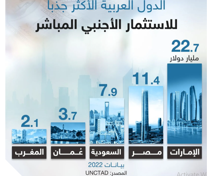 الإمارات ومصر في مقدمة الدول العربية الأكثر جذبا للاستثمار الأجنبي المباشر .