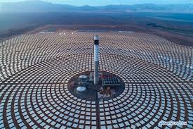 التقنيات الحرارية الشمسية المركزة: تُستخدم مرايا مكافئية لتركيز ضوء الشمس على مستقبل حراري يسخن سائلًا ناقلًا للحرارة، مثل الملح المنصهر. يتم تخزين هذه الطاقة الحرارية ثم تحويلها إلى بخار يدفع التوربينات لتوليد الكهرباء، ما يتيح إنتاج طاقة حتى بعد غروب الشمس.