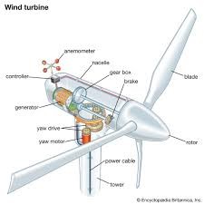طاقة الرياح وتحويل الزخم: تستمد التوربينات طاقتها من زخم الرياح، حيث يتم تحويل الطاقة الحركية للهواء إلى طاقة دورانية في شفرات التوربين. يحدد حد بيتز (Betz limit) أن أقصى كفاءة نظرية لاستخراج الطاقة من الرياح هي حوالي 59.3٪، بسبب الحاجة إلى استمرار تدفق الهواء خلف التوربين.