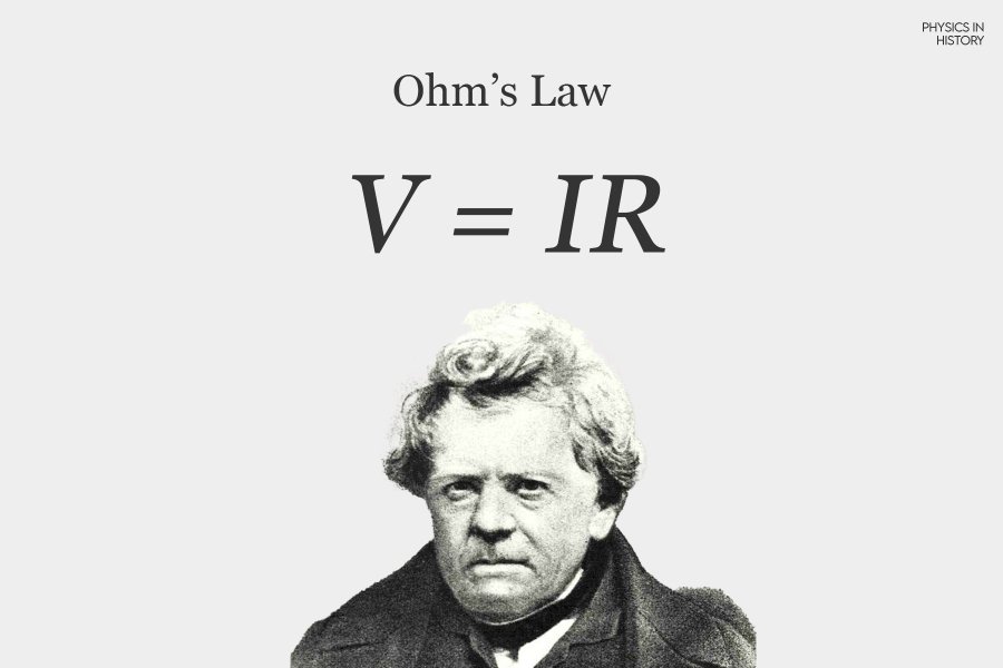 صاغ جورج أوم قانون أوم في عام 1827، واصفًا العلاقة بين الجهد والتيار والمقاومة، وهو أمر ضروري للهندسة الكهربائية وتصميم الدوائر.