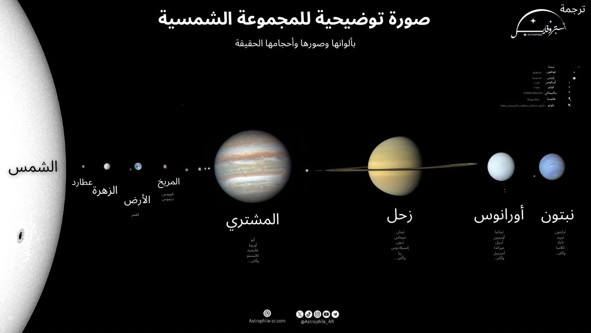 صورة توضيحية للمجموعة الشمسية بألوانها وصورها وأحجامها الحقيقية.