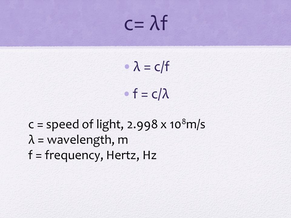 معادلة ماكسويل لموجات الإلكترومغناطيسية : c = λf