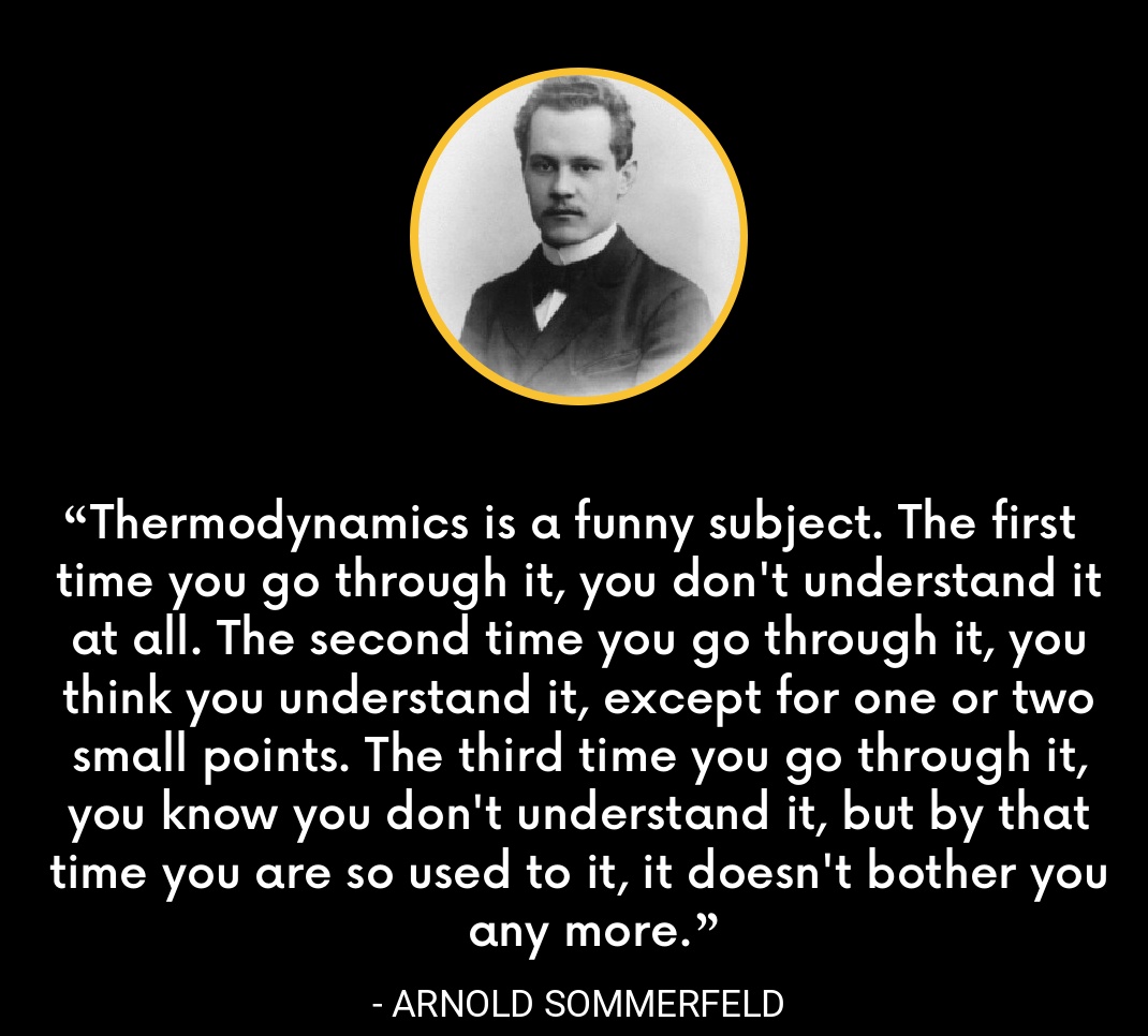 الترموديناميكا مجال مضحك، عند دراسته لأول مرة، لا تفهمه أبدا، المرة الثانية حين تدرسه، تظن أنك فهمته باستثناء نقطة أو نقطتين، المرة الثالثة حين تدرسه لا تفهمه، لكن آنذاك تكون قد اعتدت عليه، فلا يزعجك الأمر.