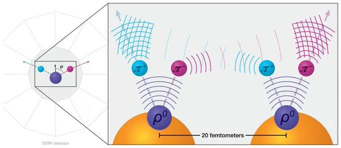تم اكتشاف نوع جديد من الترابط الكمومي بين جزيئين. تم اطلاق ذرات الذهب للتصادم لكن عندما لم يصطدموا على بعد 20 فيمتو ميتر تفاعلت الفوتونات مع الجسيمات الأولية داخل نواة كل أيون آخر، مما نتج أزواجًا من الجسيمات تسمى البيونات pions أحدها موجب والآخر سالب.