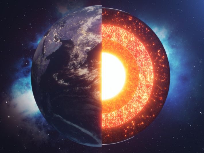 اللب الداخلي للارض هو عبارة عن كرة معدنية ضخمة ومصنوعة بشكل أساسي من الحديد والنيكل يبلغ عرضها 2500 كم وتبلغ درجة الحرارة فيها بين 5000 إلى 6000 درجة مئوية، أي ما يصل إلى أكثر من 6000 مرة من درجة حرارة الغلاف الجوي وبما يكفي لإذابة المعادن، بينما تبقى المعادن الموجودة في اللب الداخلي صلبة بسبب الضغط الكبير المحيط بها.