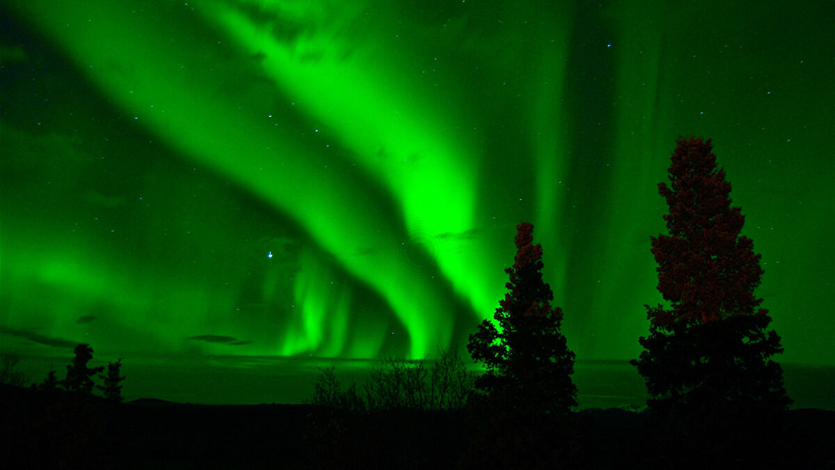ينتج الشفق القطبي من تفاعل رياح شمسية تتكون من أيونات ذات طاقة هائلة تنتج عن الإنفجارات على سطح الشمس، مع المجال المغناطيسي للأرض فتنفذ من القطبين لتتفاعل مع جزيئات الهواء فتنتج حلقات الأورورا من الأحمر والأزرق والأخضر والأصفر في السماء.