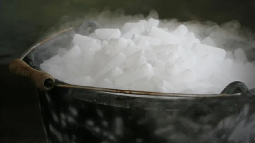عندما "يذوب"، لا يتحول إلى سائل مثل الثلج العادي، بل يتحول مباشرة إلى غاز في عملية تُسمى التسامي (sublimation). لهذا يُستخدم في المؤثرات الخاصة لإنتاج "دخان" كثيف، وأيضاً لحفظ الأشياء باردة دون أن يترك بللاً.