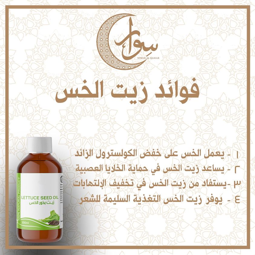 يحتوى زيت الخس على نسبة عالية من العناصر والمعادن الأساسية، والفيتامينات؛ مثل: (A, B complex, C)، ومضادات الأكسدة، الضرورية لصحة الجسم، ومنع نمو وانتشار الجذور الحرة
