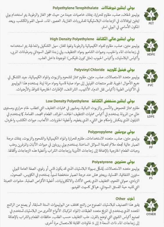 اسماء ورموز المواد البلاستيكية القابلة لأعادة التدوير