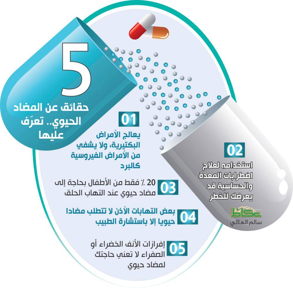 المضادات الحيوية : هي أدوية فعالة تستهدف أمراضًا معينة ومن الممكن إذا تم استخدامها بالشكل الصحيح أن تنقذ حياة الكثيرين تعمل المضادات الحيوية على تعطيل وظائف حيوية هامة في البكتيريا الضارة، لتقضي على البكتيريا تمامًا أو توقفها عن العمل والتكاثر بشكل طبيعي، ويساعد هذا الجهاز المناعي على مواجهة العدوى والالتهاب.