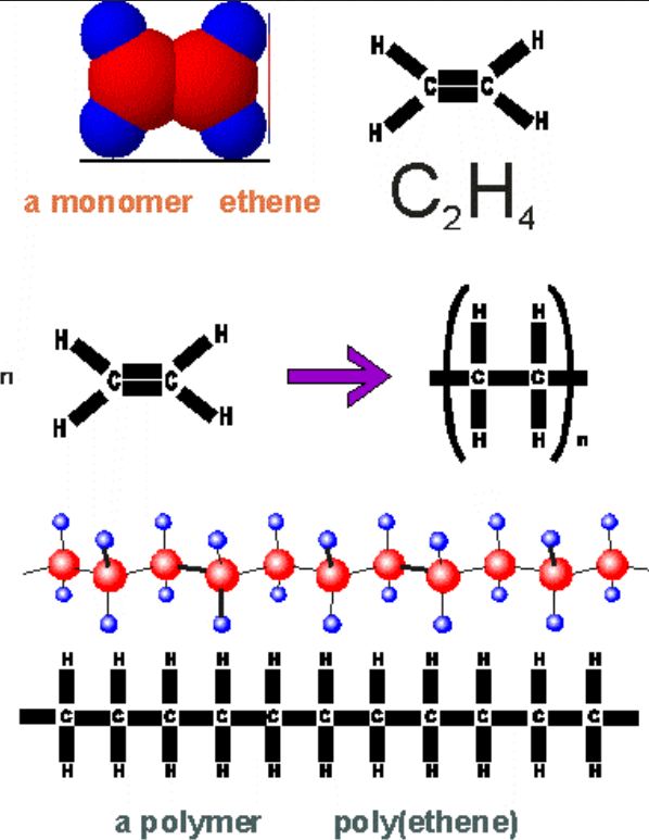 التبلمر polymerization هو عملية ارتباط الجزيئات الصغيرة بعضها ببعض، وتسمى الوحدة المتكررة repeating unit أو أحادي الحد monomer وتعني باليونانية الجزء الواحد، وبتكرر الارتباط، تعطي الوحدات المتكررة جزيئاً ضخماً يدعى المتبلمر polymer، وتعني باليونانية المتعدد الأجزاء. فالبولي إثيلين المادة البلاستيكية شائعة الاستعمال، ينتج من تفاعل تبلمر الإثلين بشروط مناسبة من درجة حرارةٍ عاليةٍ (200ْس)، وضغطٍ عالٍ (1000 ضغط جوي) بوجود كميات ضئيلة من فوق أكسيد الهدروجين حافزاً.
