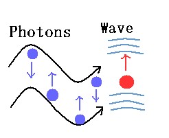 ينفرد الضوء بخصائص مزدوجة وهي خواص جسيمية (التداخل والامتصاص ) وخصاص موجية (الانكسار, الانعكاس والتشتت) ولايمكن عزل احداهما عن الاخرى: ووصفها العالم (IR. P. Feynmanstream) : قائلا ((الآن نعرف كيف تتصرف الإلكترونات والفوتونات. ولكن ماذا يمكنني أن أسميها؟ إذا قلت أنهم يتصرفون مثل الجسيمات أعطي انطباع خاطئ. وكذلك إذا قلت أنهم يتصرفون مثل الموجات. لذا إنهم يتصرفون بطريقتهم الخاصة ، والتي يمكن أن تسمى تقنيًا طريقة ميكانيكية كمومية. إنهم يتصرفون بطريقة لا مثيل لها.