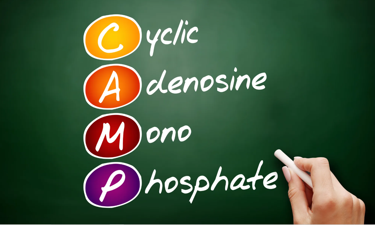 هو جزيء إشارة خلوية محوري يعد أحد أهم الرسل الثانوية في نقل الإشارات داخل الخلايا حقيقية النوى. ينشأ عند ارتباط الهرمونات أو النواقل العصبية بمستقبلاتها المقترنة بالبروتين G على الغشاء البلازمي مما يؤدي إلى تنشيط إنزيم Adenylyl cyclase الذي يحفز تحويل ATP إلى cAMP. يقوم cAMP بعد ذلك بتنشيط إنزيم PKA والذي يُحدث تعديلات فوسفورية على بروتينات مستهدفة تؤثر في مسارات استقلابية وتنظيمية متعددة داخل الخلية. ويشارك cAMP في تنظيم التعبير الجيني من خلال تنشيط بروتينات مثل CREB