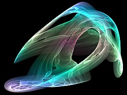 مجموعة جوليا هي دالة هولومورفية تتكون من النقاط التي يكون تصرفها الطويل الأمد تحت التكرارات المتعددة للدالة f قد تتغير بشكل شديد تأثير اضطرابات طفيفة. في الأعلى هو شريحة ثلاثية الأبعاد من مجموعة جوليا ذات الأبعاد الأربعة.