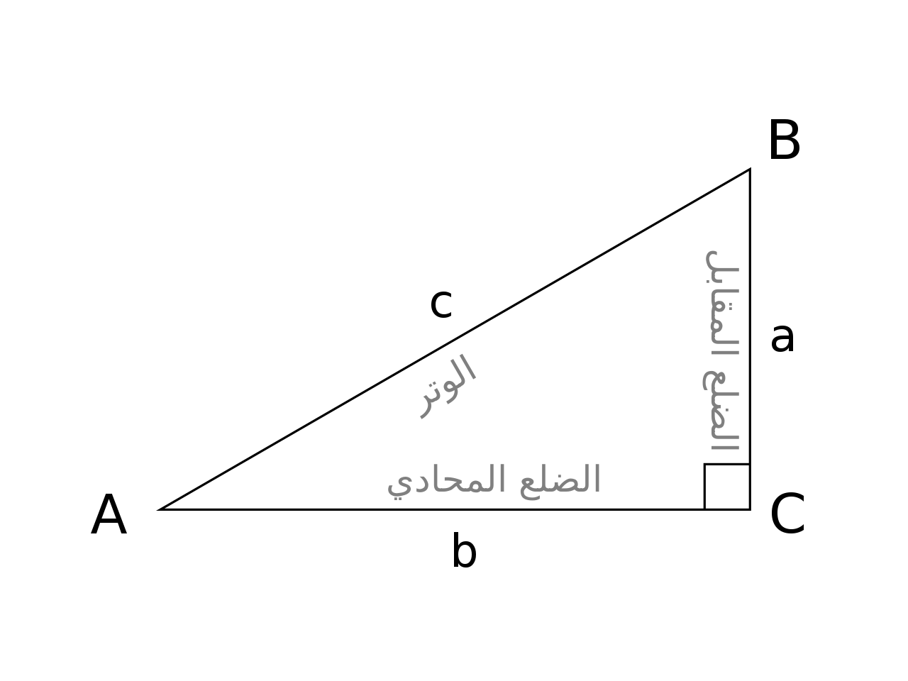 في هذا المثلث قائم الزاوية: sin A = a/c; cos A = b/c; tan A = a/b.